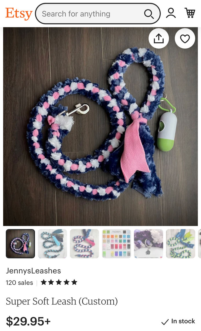 With no other career opportunities panning out due to the pandemic, I knew I needed to get scrappy. I decided to start this Etsy shop to sell leashes that my mom (Jenny) braids by hand. My goals were to learn how to market a product online and generate some extra income for my mom. By combining my skills as a copywriter and marketer with her skills as a professional photographer I established the Jenny's Leashes brand that quickly became a Bestseller.